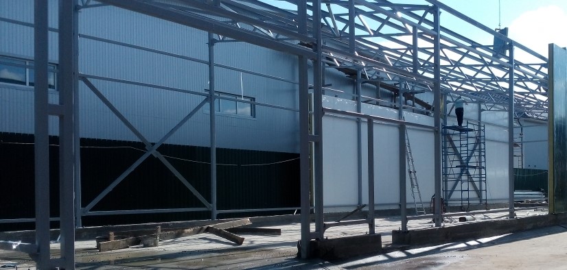 Металлоконструкции состоят из горизонтальных элементов, закрепленных к колоннам, и вертикальных профилей, опирающихся на горизонтальные швеллеры. Если шаг колонн здания больше 6 метров, устанавливаются дополнительные колонны фахверка, усиливающие конструкцию. Эти опоры размещаются на фундаменте. Верхняя часть крепится к балкам (фермам) основного каркаса. В качестве листовых шарниров используются гнутые пластины.